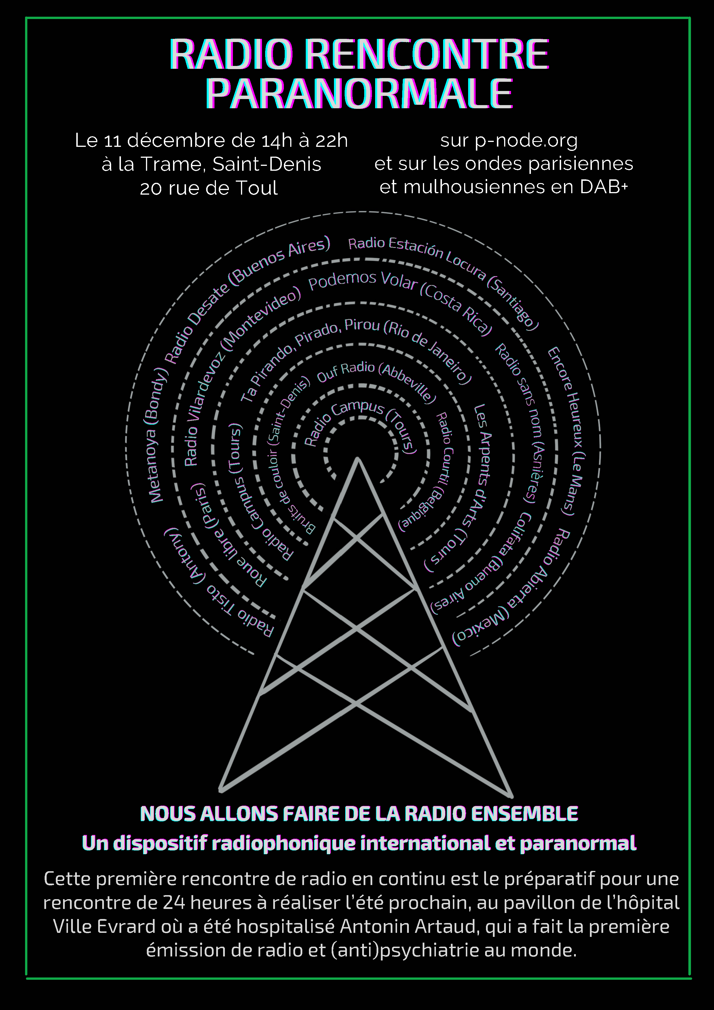 Rencontres radiophoniques entre radio et émissions concernées par les milieux (anti)psychiatriques - ICI LA FOLIE EST AUTORISEE. En direct samedi 11 dcembre 2021 de 14h à tard dans la nuit sur les ondes de Pi Node.